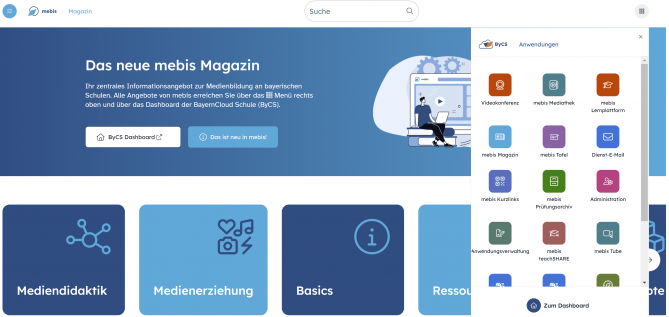 Die pädagogischen Anwendungen und digitalen Unterrichtsinhalte von mebis – Landesmedienzentrum Bayern sind zentraler Teil der BayernCloud Schule.